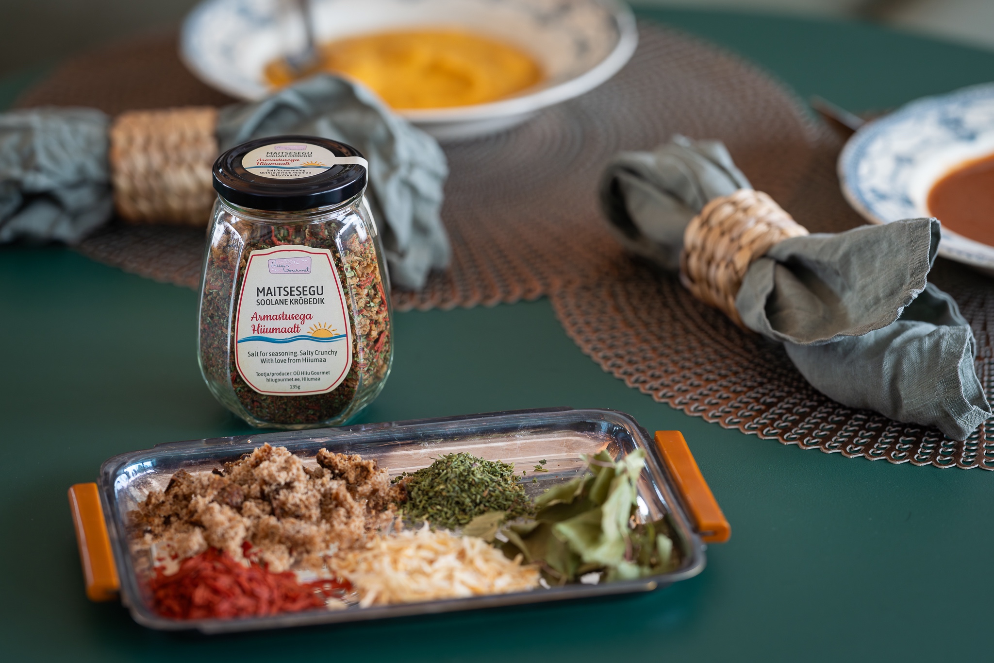 Soolases krõbedikus on sees rohkelt röstitud sibulat, magusat kuivatatud tomatit, kaselehti ja naati, ning natuke ekstrakõbedaks hiiumaa musta-riivleiba.