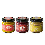 Ingredients: water, mustard, mustard seeds, juniper berries 3%, sugar, oil, apple cider vinegar, salt.