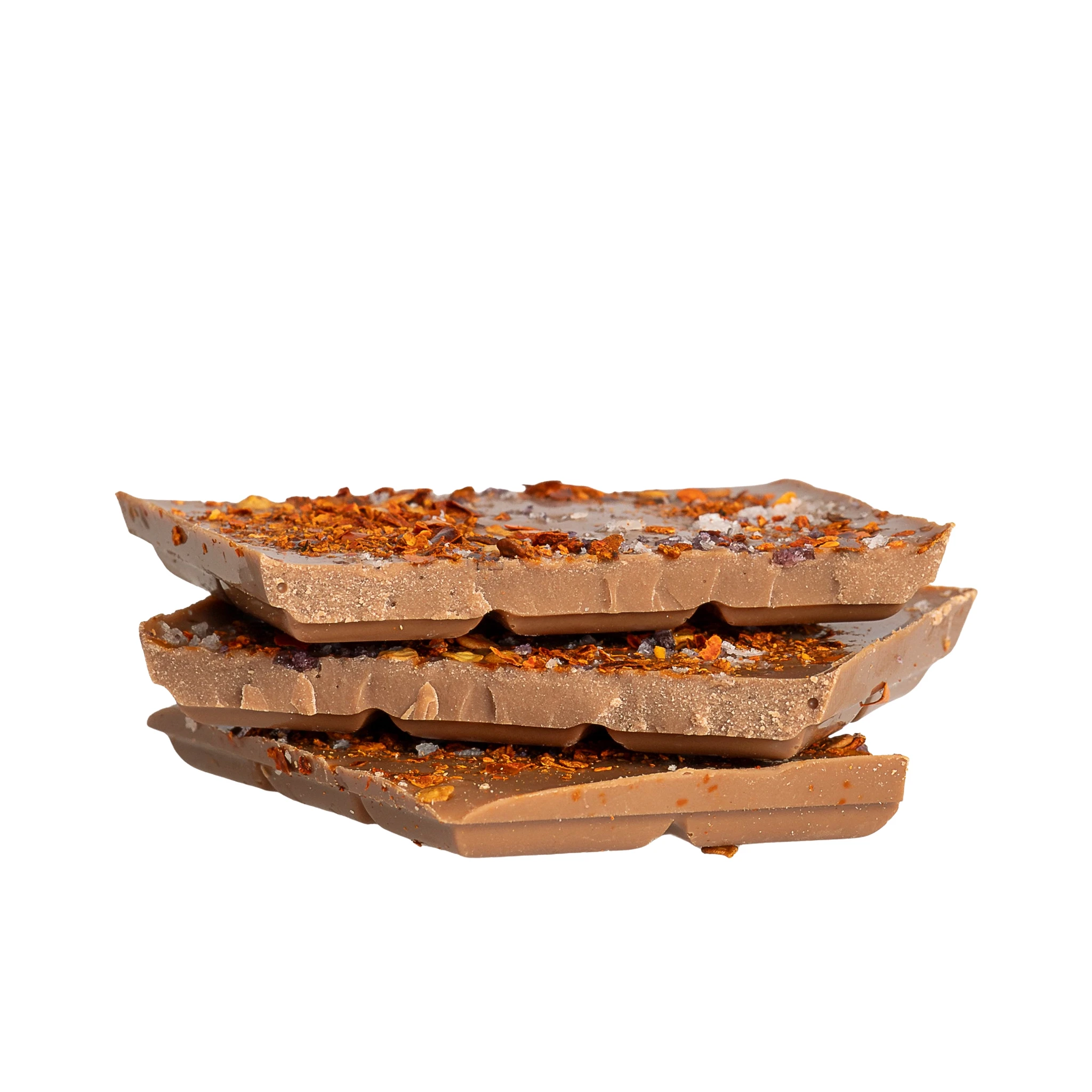 Ingredients: caramel chocolate (sugar, cocoa butter, whole milk powder, cocoa mass, skimmed milk powder, caramelized sugar, emulsifier soy lecithin, natural flavors (vanilla), chili flakes, sea salt flakes).