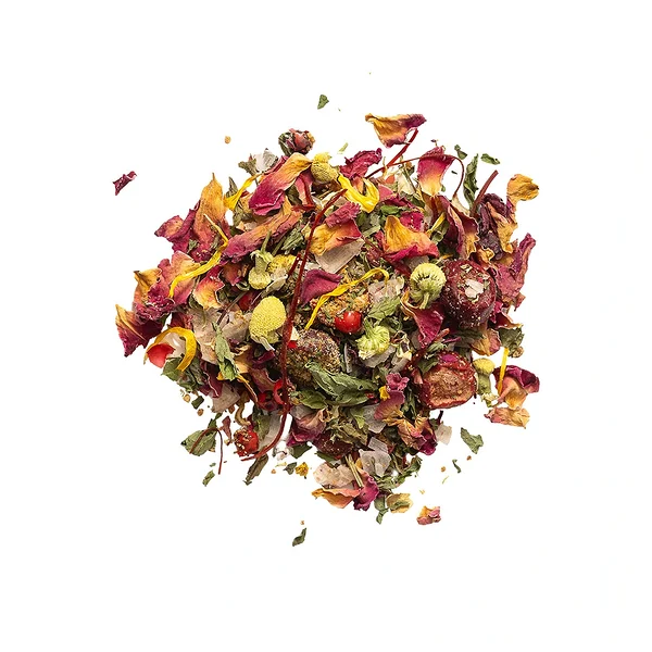 Koostisosad: Himalaaja soolahelbed 15%, jõhvikas, roosiõied, roosuhkur, münt, basiilik, saialill.