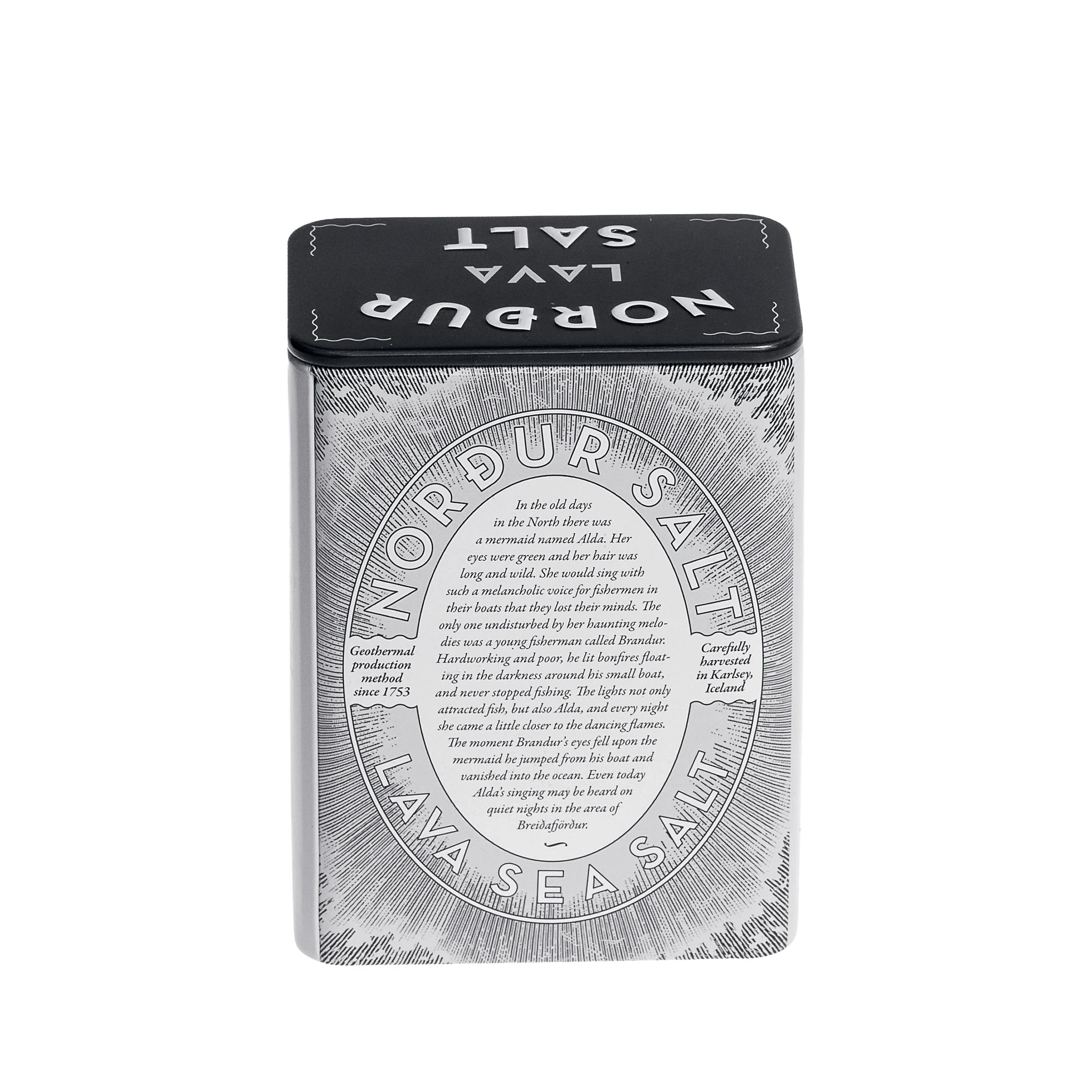 Norður lava sool on pakendatud vastupidavasse ja stiilsesse metallkarpi, mis hoiab soola värske ja kasutusvalmina pikka aega.
