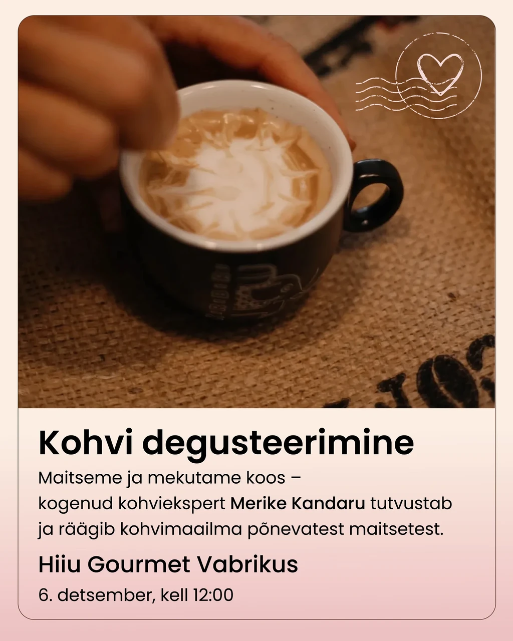 6. detsembril ootab sind Hiiu Gourmet Vabrikus üks mõnus ja vaba kohvihommik, kus kogenud kohviekspert ja koolitaja Merike Kandar avab tass-tassi haaval kohvimaailma eri tahke.